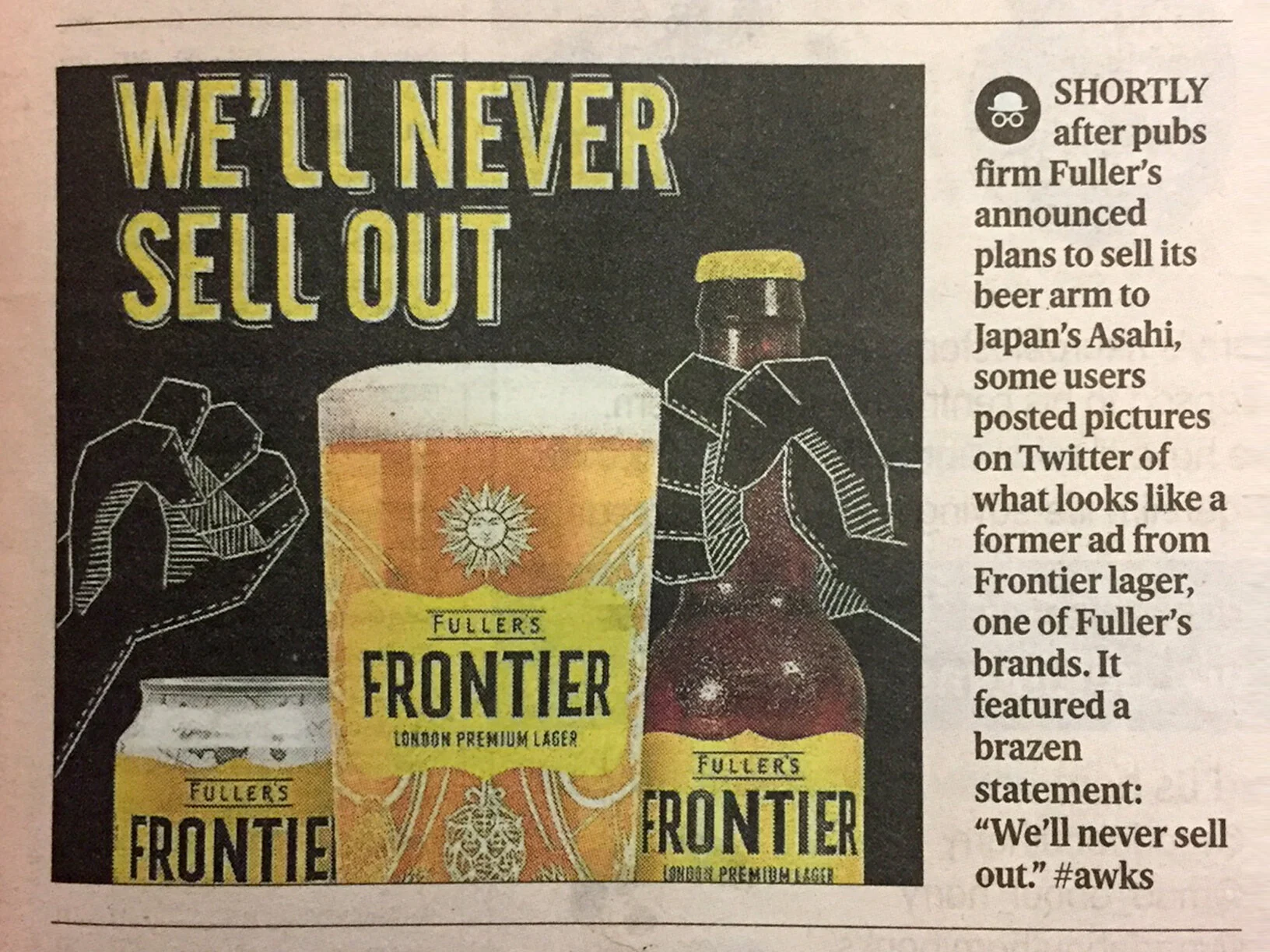 As London’s oldest independent brewery, Fuller’s stood for true originality. Unfortunately not long after this ad ran across their social channels they sold out to Asahi. #awks